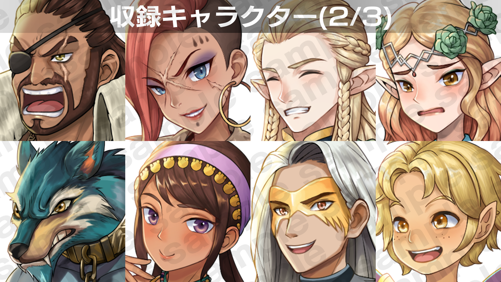 RPG MAKER UNITEのゲームテンプレートに収録された基本キャラクターの表情素材集の第2弾となります。23体のキャラクター毎に7種類の表情を用意した素材集となり、ストーリーやキャラクターに深みを持たせた表現に活かせます。