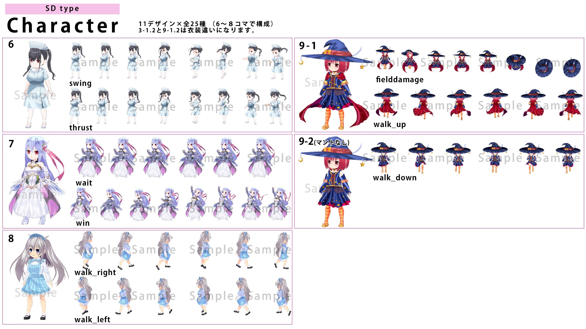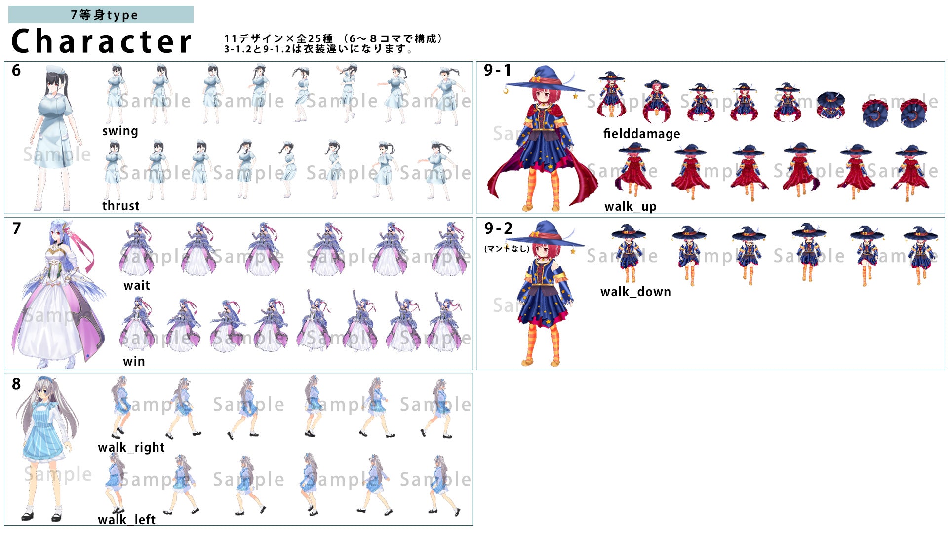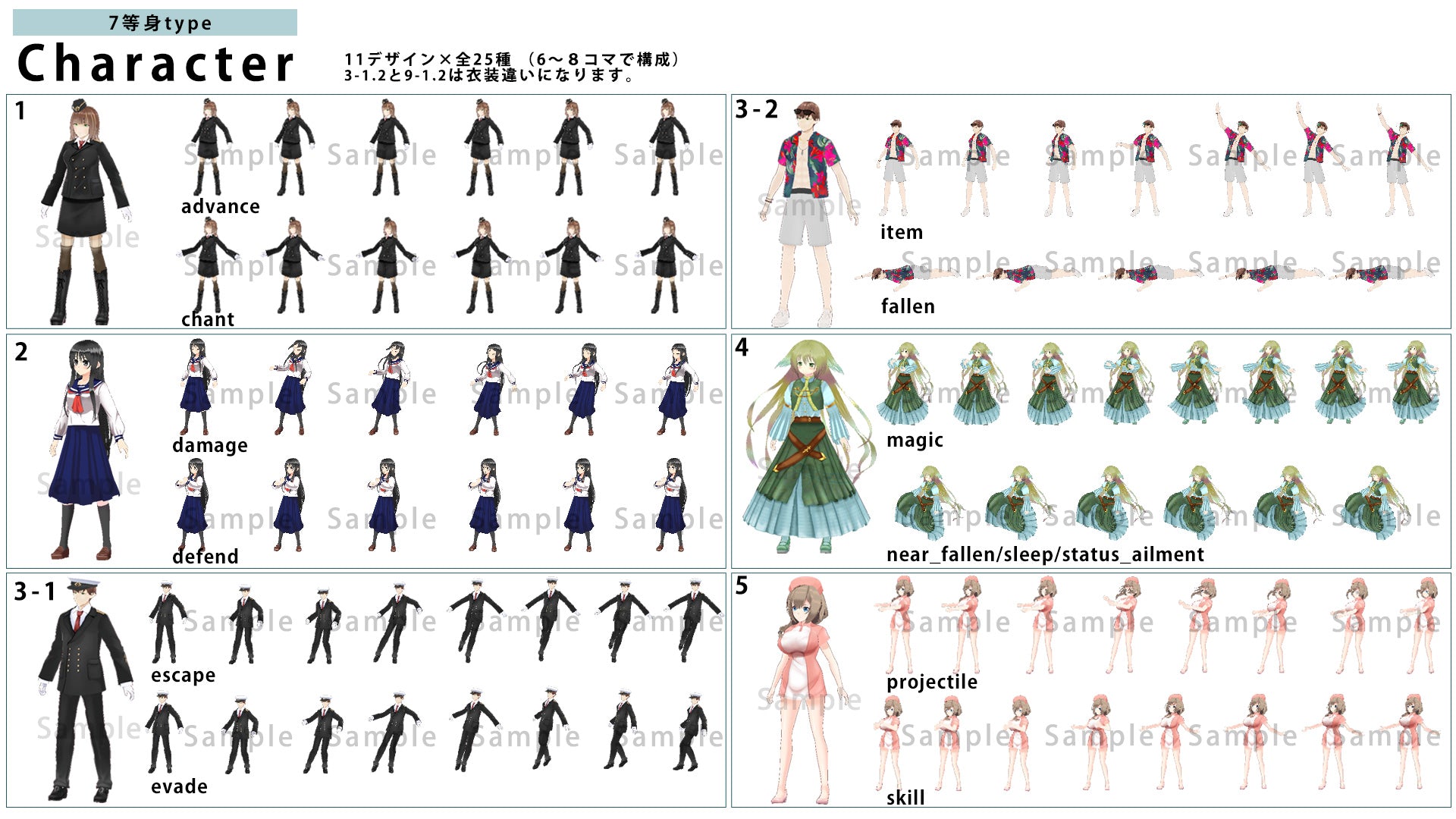 - 7頭身 & SD(3.5頭身)の歩行グラフィックスを収録