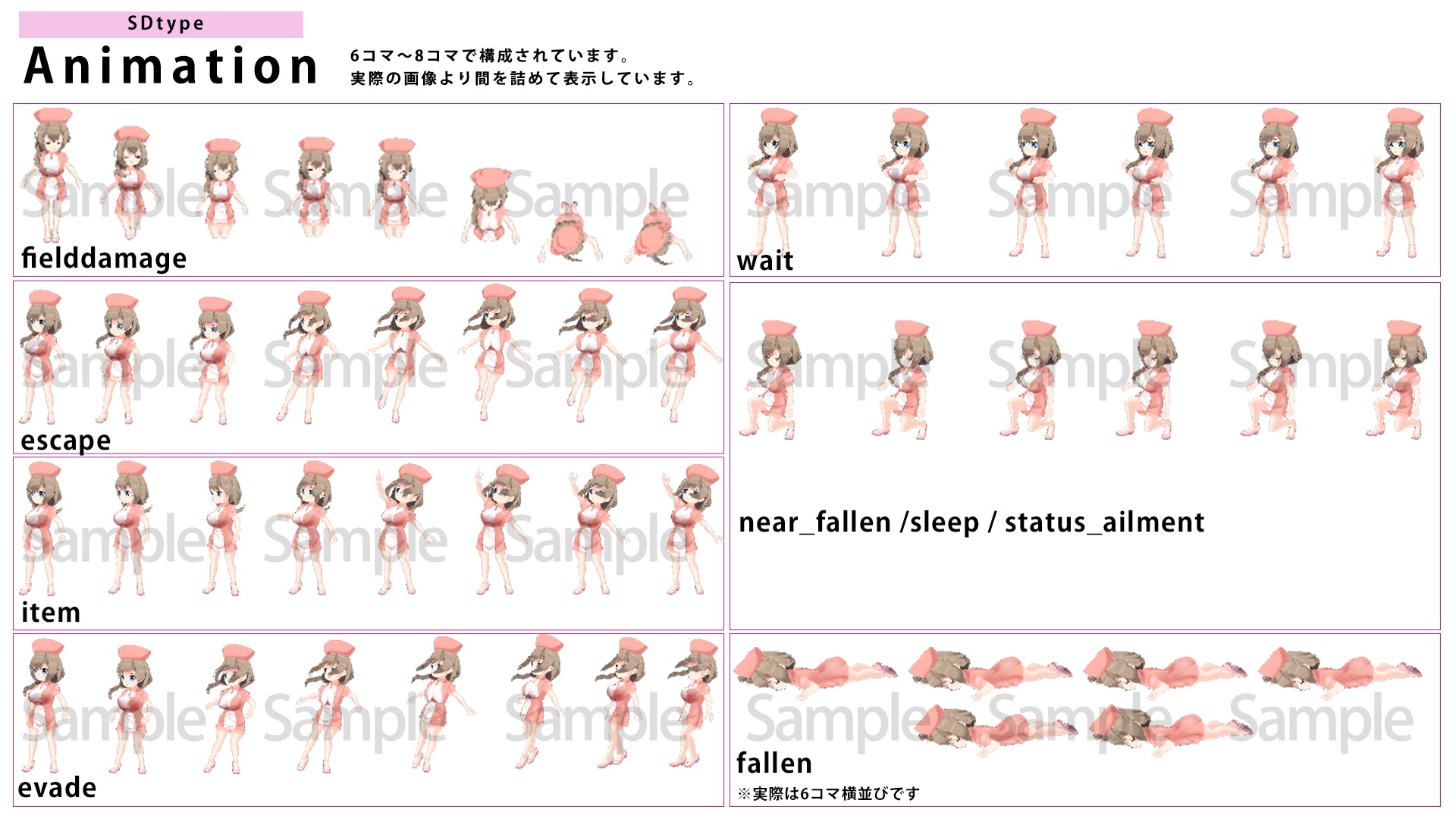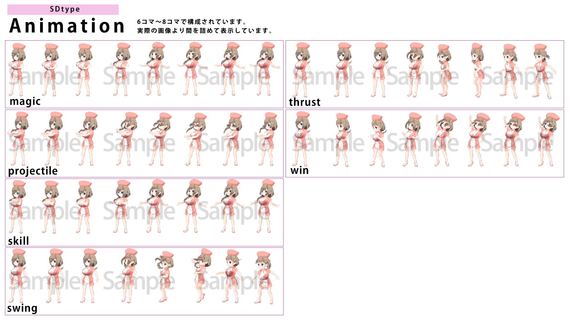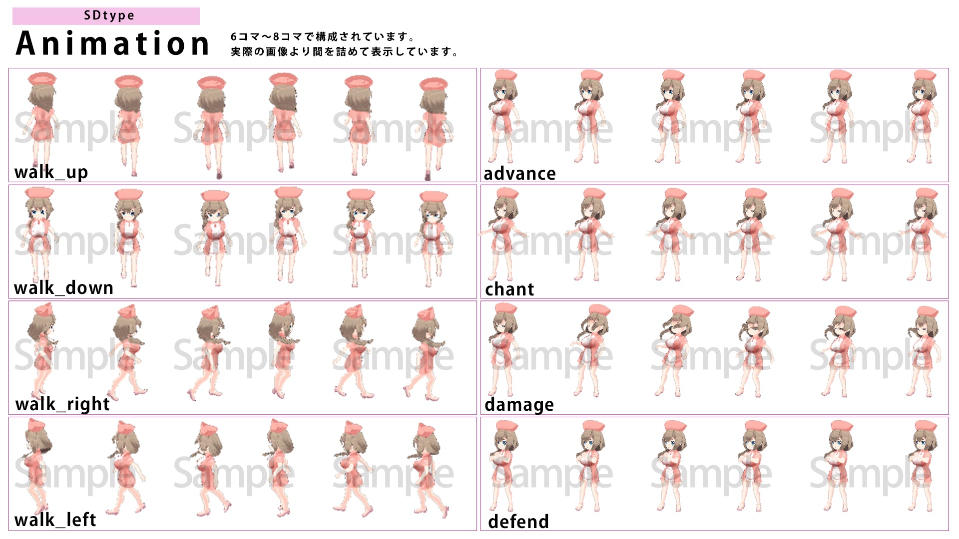 - 7頭身 & SD(3.5頭身)の歩行グラフィックスを収録
