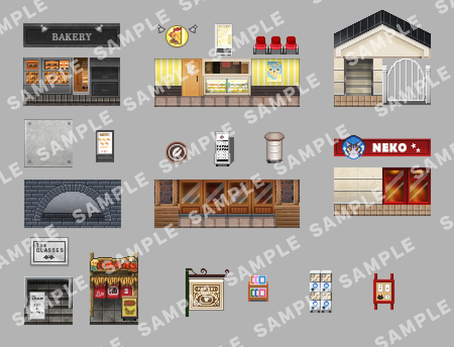 SERIALGAMES 住みたい街タイルセット - 街のお店セット - RPGツクールMZ