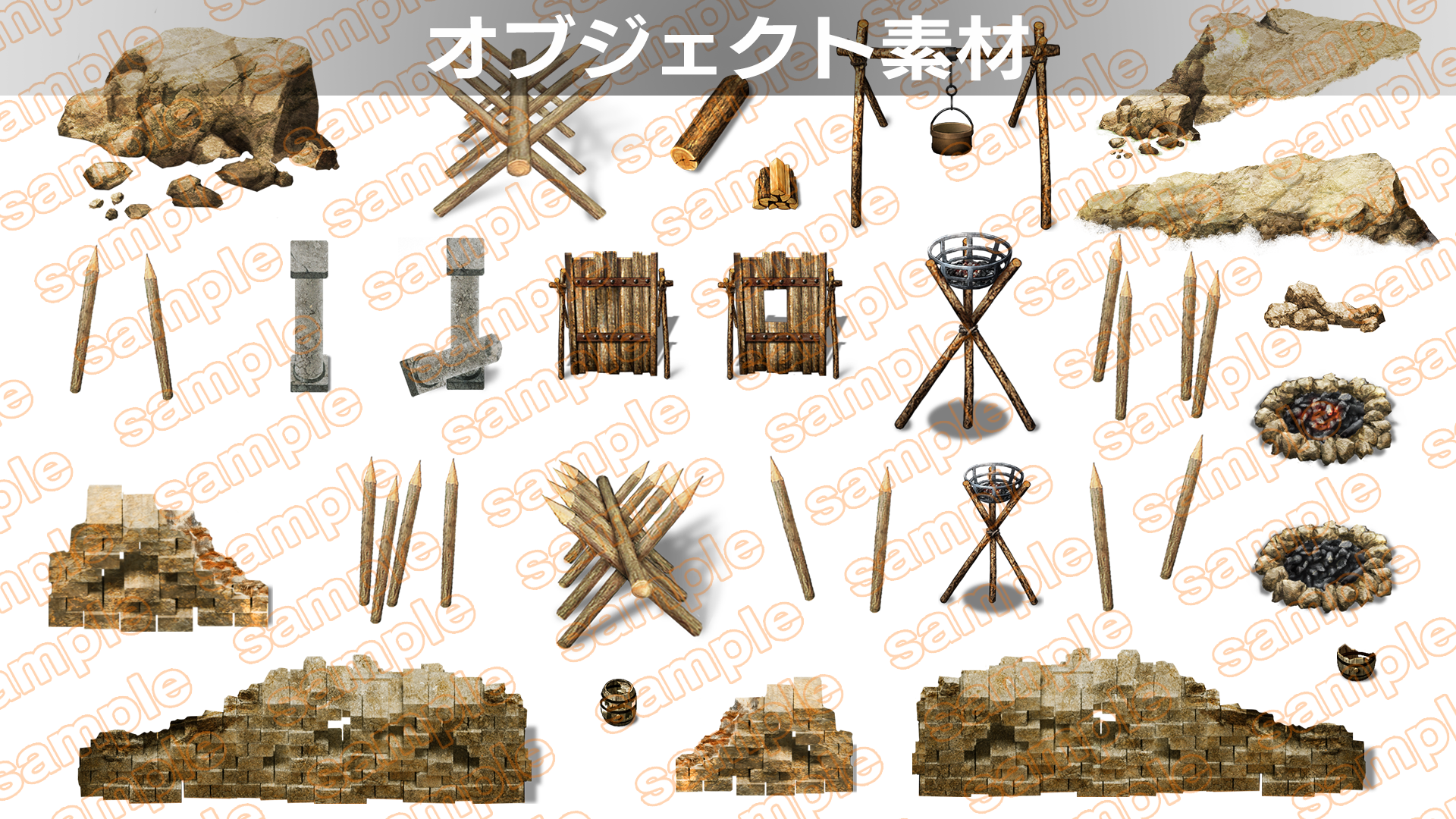 本素材集はRPG Maker Uniteのゲームテンプレートと同じ世界観で作成された素材となり、違和感なくゲームの世界を拡大できます。第四弾はバーバリアンの”ゴレアノス”や”ヴァネッサ”の舞台となる「前線防衛拠点オラド」となります。