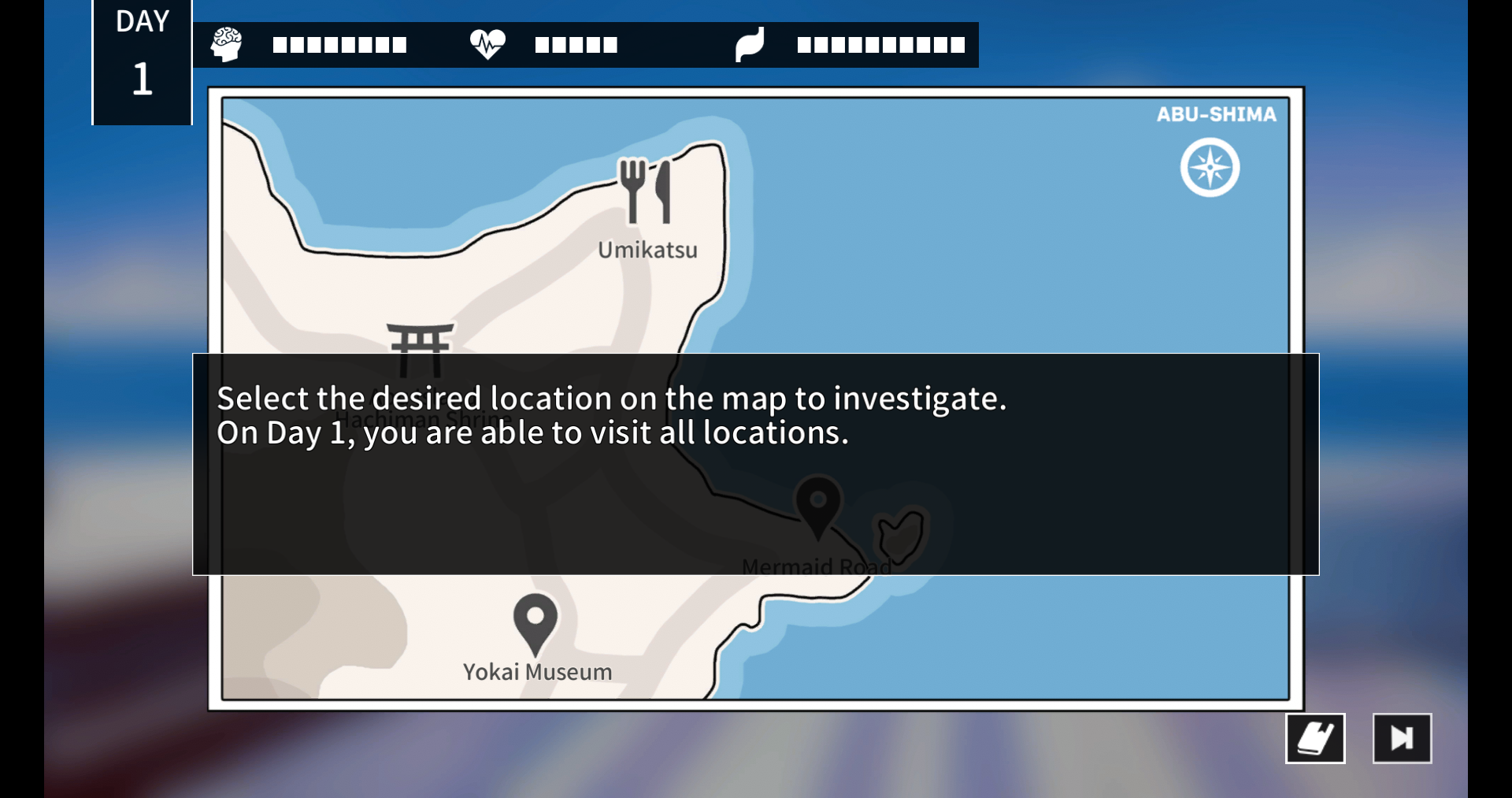 A horror dice roll adventure inspired by the Cthulhu Mythos. Much like in a tabletop RPG, "abilities," "luck," and "dice rolls" influence the story's progression. The protagonist is cursed on an island in the Seto Inland Sea. Investigate the island, uncover the mysteries, and break the curse!