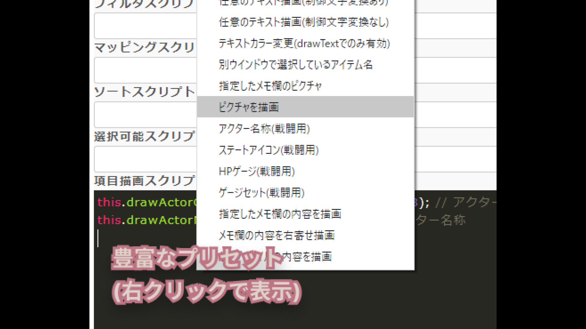 Based on Triacontane’s SceneCustomMenu, it enables real-time editing while the game is running.