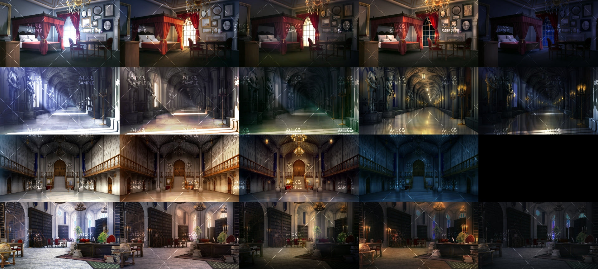 Ideal for RPGs and novel games, it features time variants for day, evening, night (lights on), night (lights off), cloudy, and rainy days, adding an ambient flair to your game aesthetics.