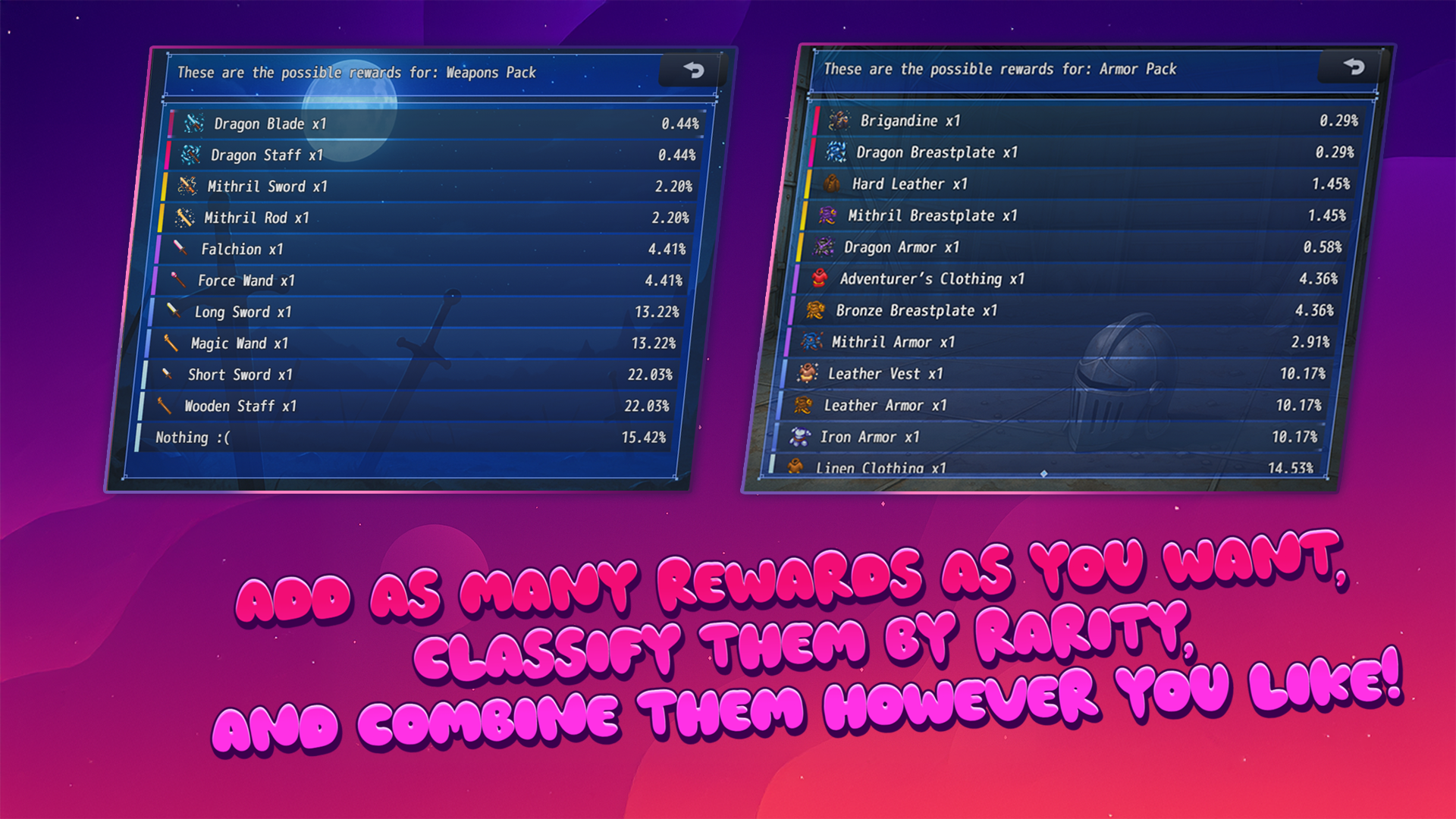 You can configure banners, drop rates, rarity tiers, guaranteed prizes, and much more — your imagination is the only limit!